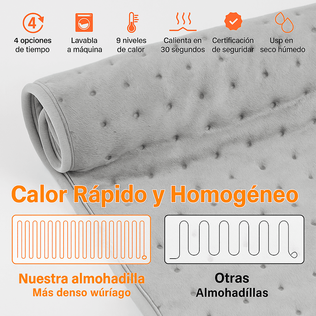 Esta almohadilla es tu solución, relaja músculos, mejora la circulación, libera la tensión acumulada y devuelve la movilidad que tu cuerpo necesita, gracias a su calor envolvente y a su función de masaje que potencia el alivio 🔥