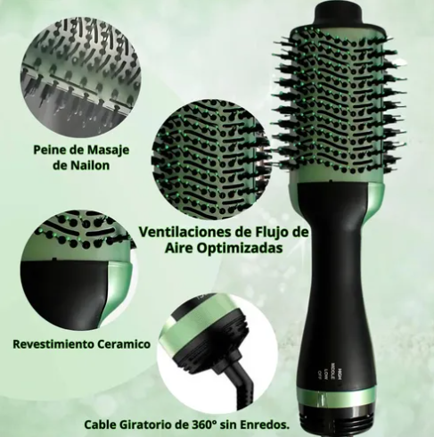 Este cepillo 3 en 1 alisa, seca y moldea en minutos 💨💁♀️. Tendrás un cabello suave, brillante ✨, manejable y sin frizz🙅♀️, con el volumen bajo control 🙌. ¡Todo esto sin aplicar calor extremo ni maltratar tu pelo! ❌🔥🥰