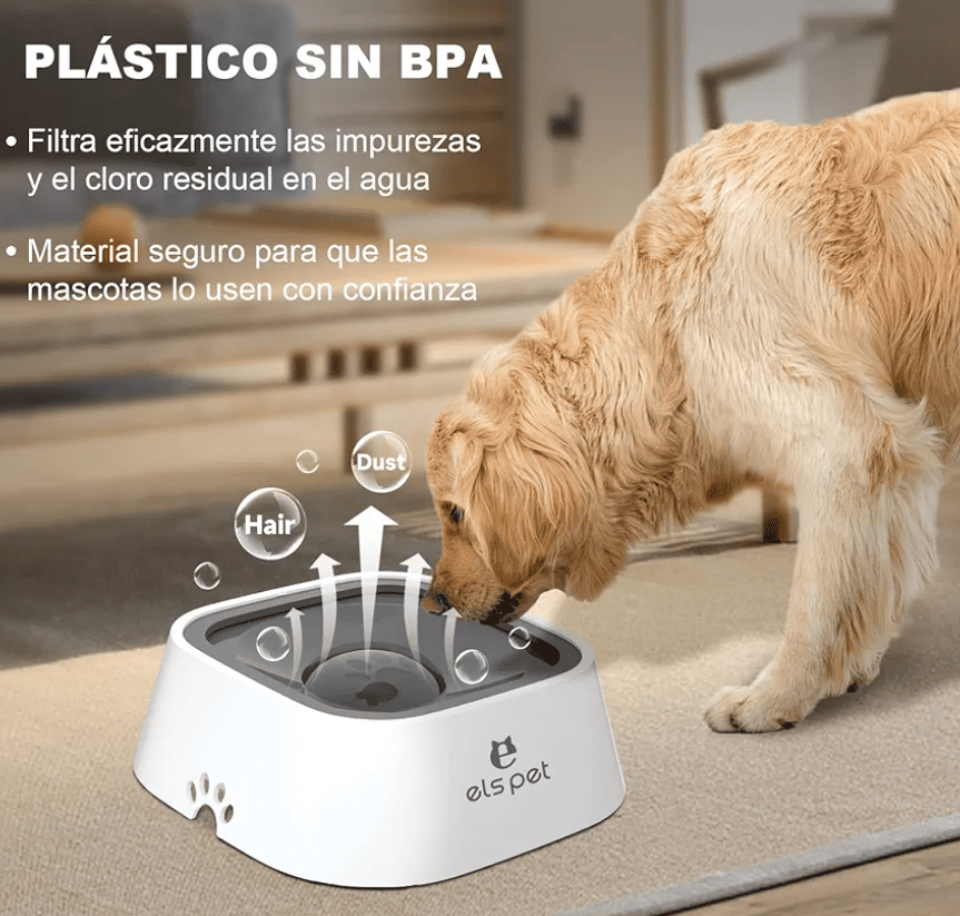 Gracias a su innovador diseño con disco flotante, ralentiza la velocidad de bebida, controlando el flujo de agua y minimizando el riesgo de atragantamientos. 🛠️🐾