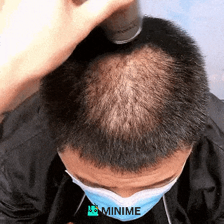 2️⃣ 🎯 Aplica el polvo en las áreas con menos cabello o canas visibles.