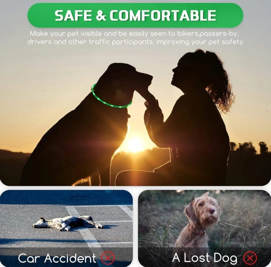¡Evita una tragedia con GlowPet! 🔦 Su luz LED ultra brillante lo hace visible a kilómetros, reduciendo el riesgo de accidentes.