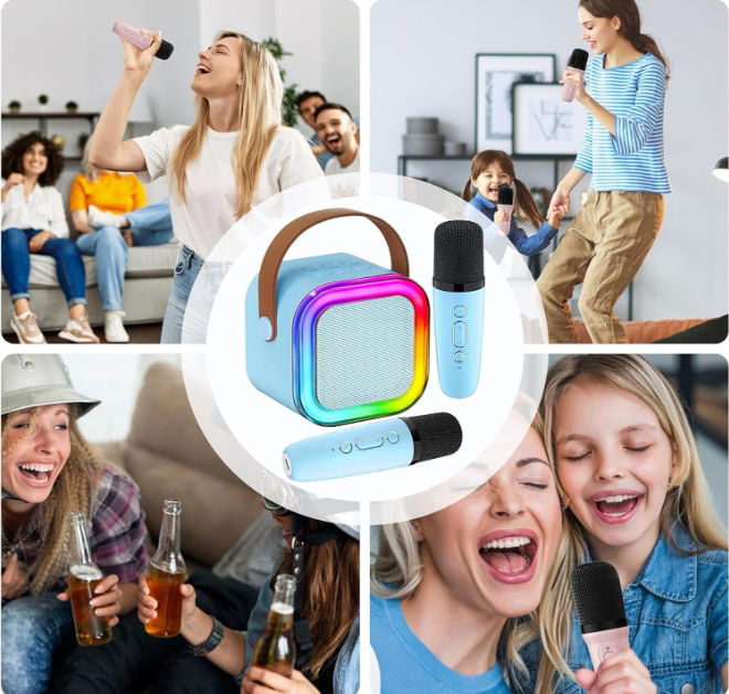 - Micrófono inalámbrico 🎤📡: Para cantar sin enredos ni cables.