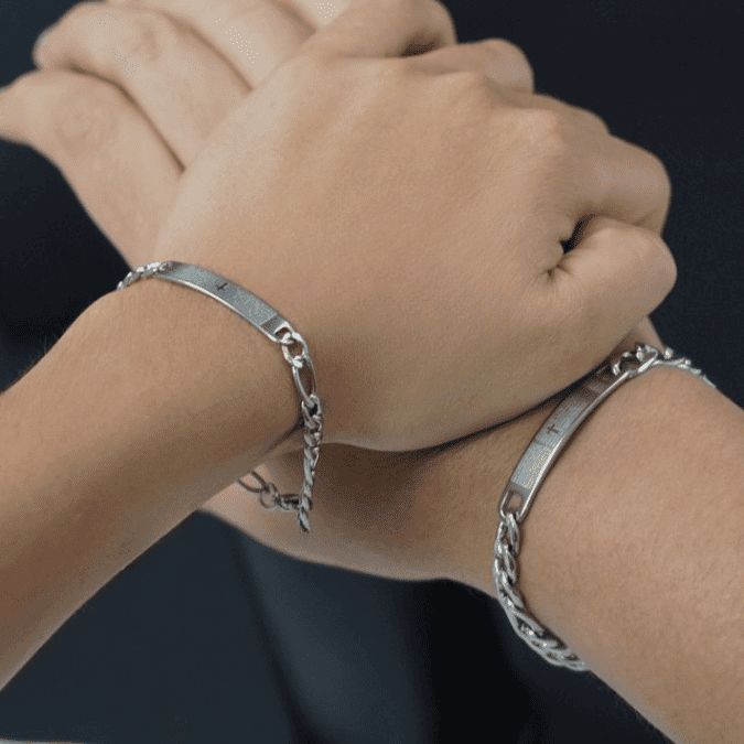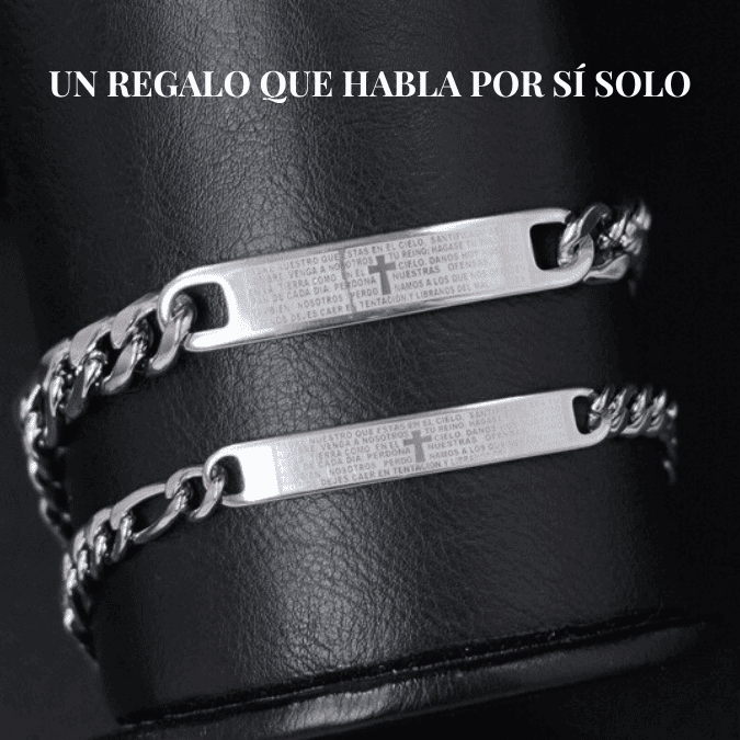 Cada pulsera lleva grabada con amor la oración del Padre Nuestro, como un recordatorio constante de que la verdadera protección viene del cielo.